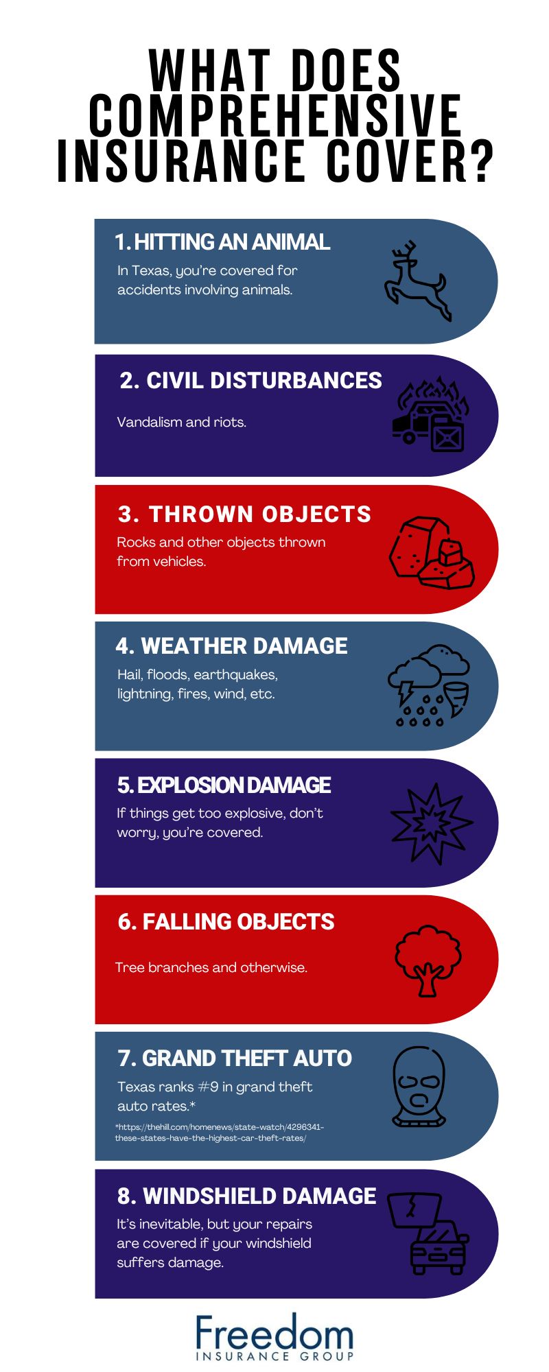 An infographic describing what comprehensive auto insurance covers.